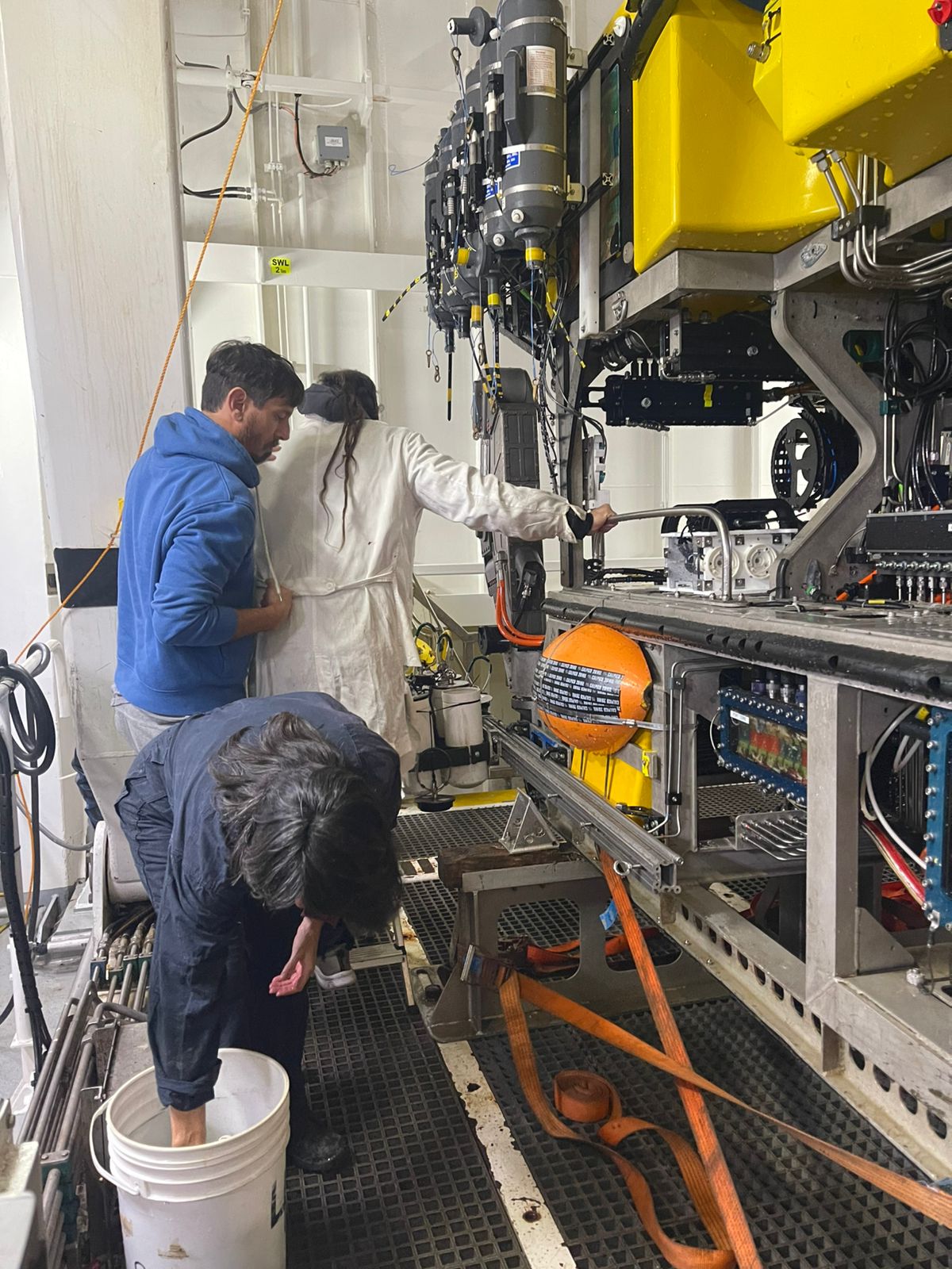 “Para nosotros es un honor ser parte de esta expedición”, cuenta Emiliano Ocampo, doctor en Ciencias Biológicas, investigador del CONICET en el IIMyC y profesor de la UNMDP. “En lo personal es como el sueño del pibe -continúa-. Es una oportunidad única de hacer una cosa así. Por eso, estamos trabajando día y noche. Literalmente trabajamos todo el tiempo porque todo el tiempo tenemos que tener el ROV en el agua para cubrir la mayor cantidad de superficie posible”.